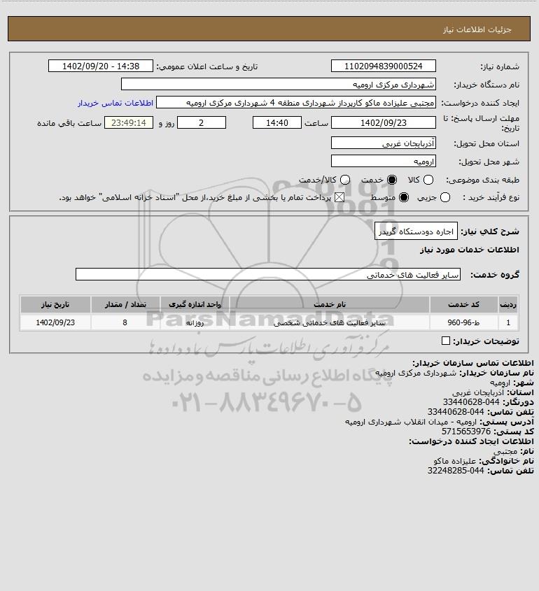 نام دستگاه خریدار:شهرداری مرکزی ارومیه