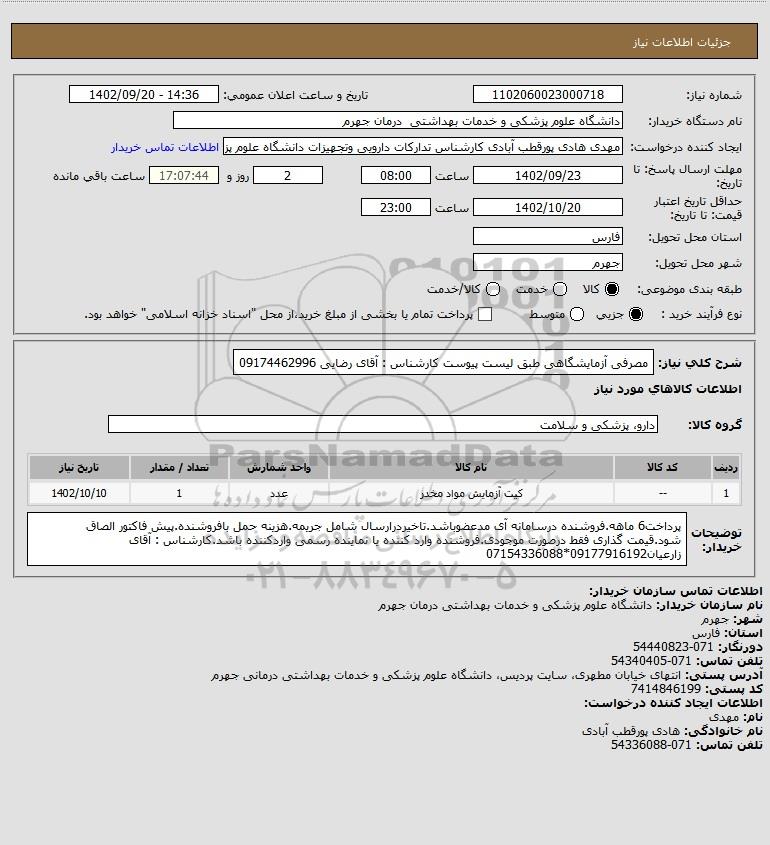شرح کلی نیاز: مصرفی آزمایشگاهی طبق لیست پیوست
