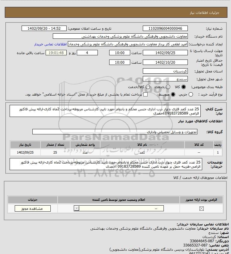 نام دستگاه خریدار:معاونت دانشجویی وفرهنگی دانشگاه علوم پزشکی وخدمات بهداشتی