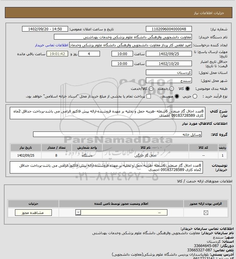 استعلام 8عدد اجاق گاز صنعتی 6شعله -هزینه حمل و تخلیه بر عهده فروشنده-ارائه پیش فاکتور الزامی می باشد-پرداخت حداقل 2ماه کاری 09183728589 احمدی, استعلام 8عدد اجاق گاز صنعتی 6شعله -هزینه حمل و تخلیه بر عهده فروشنده-ارائه پیش فاکتور الزامی می باشد-پرداخت حداقل 2ماه کاری 09183728589 احمدی