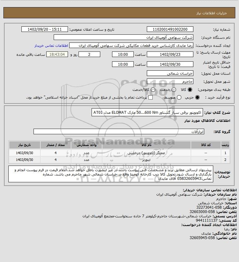 نام سازمان خریدار: شرکت سهامی آلومینای ایران