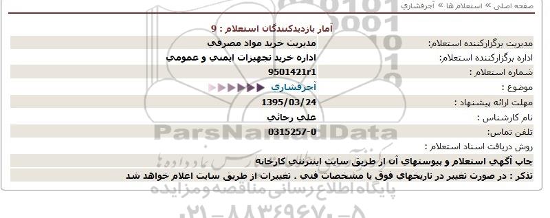 اداره برگزارکننده استعلام: اداره خرید تجهیزات ایمنی عمومی و مصرفی