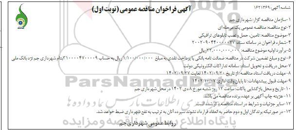 مناقصه تامین حمل و نصب تابلوهای ترافیکی, مناقصه تامین حمل و نصب تابلوهای ترافیکی