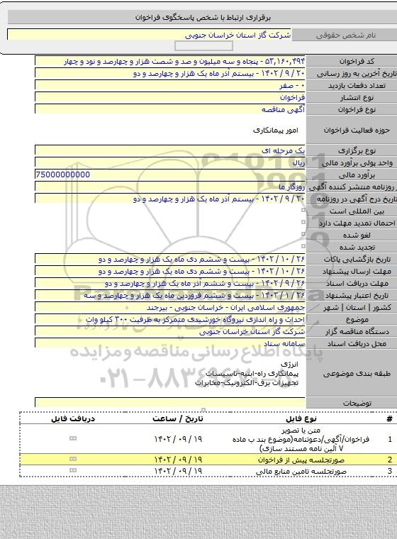 این مناقصه در تاریخ 1402/09/20 شروع و مهلت آن تا تاریخ 1402/09/26 میباشد.