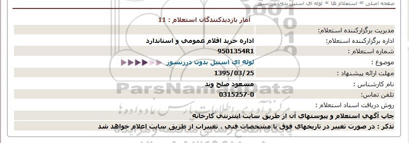 استعلام لوله ای استیل بدون درزنسوز , استعلام, استعلام لوله ای استیل بدون درزنسوز