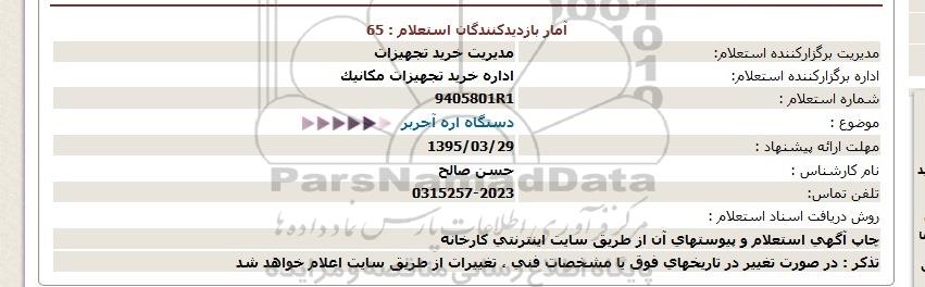 اداره برگزارکننده استعلام: اداره خرید تجهیزات مکانیک