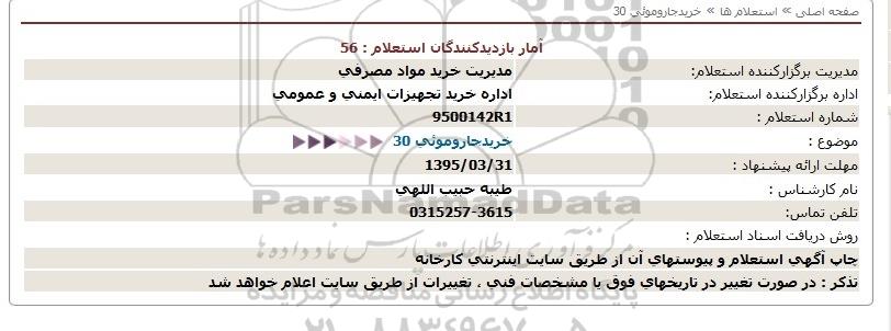 اداره برگزارکننده استعلام: اداره خرید تجهیزات ایمنی و عمومی