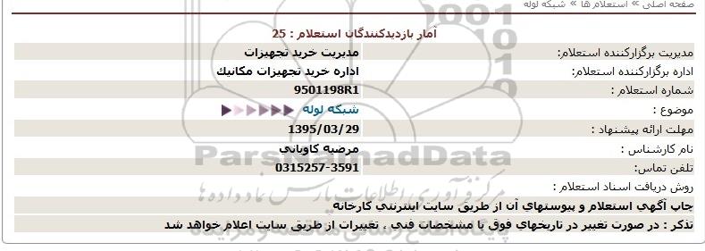 اداره برگزارکننده استعلام: اداره خرید تجهیزات مکانیک