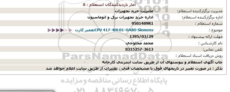 موضوع : CPU 417-4HL01-OABO Siemensتعمیر كارت