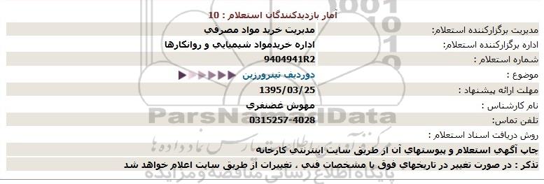 اداره برگزارکننده استعلام: اداره خریدمواد شیمیایی و روانکارها