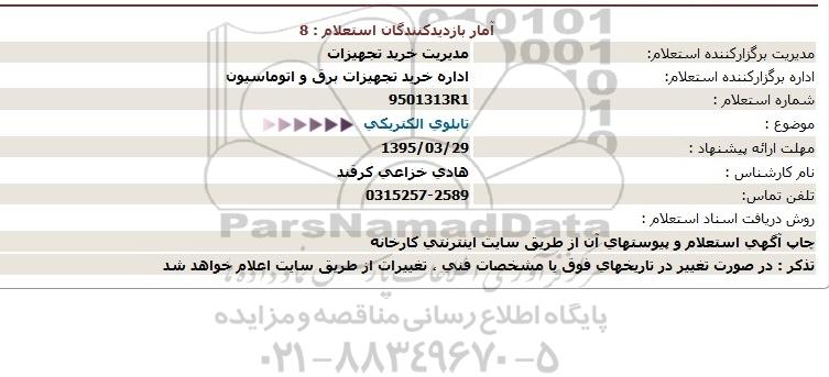 اداره برگزارکننده استعلام: اداره خرید تجهیزات برق و اتوماسیون