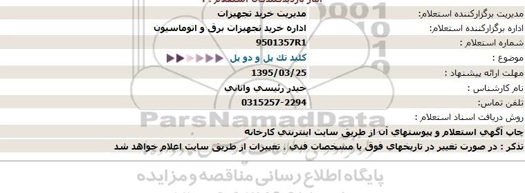 اداره برگزارکننده استعلام: اداره خرید تجهیزات برق و اتوماسیون