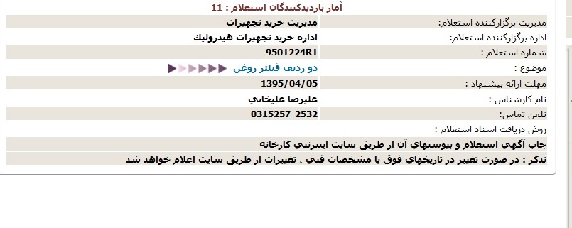 اداره برگزارکننده استعلام: اداره خرید تجهیزات هیدرولیک