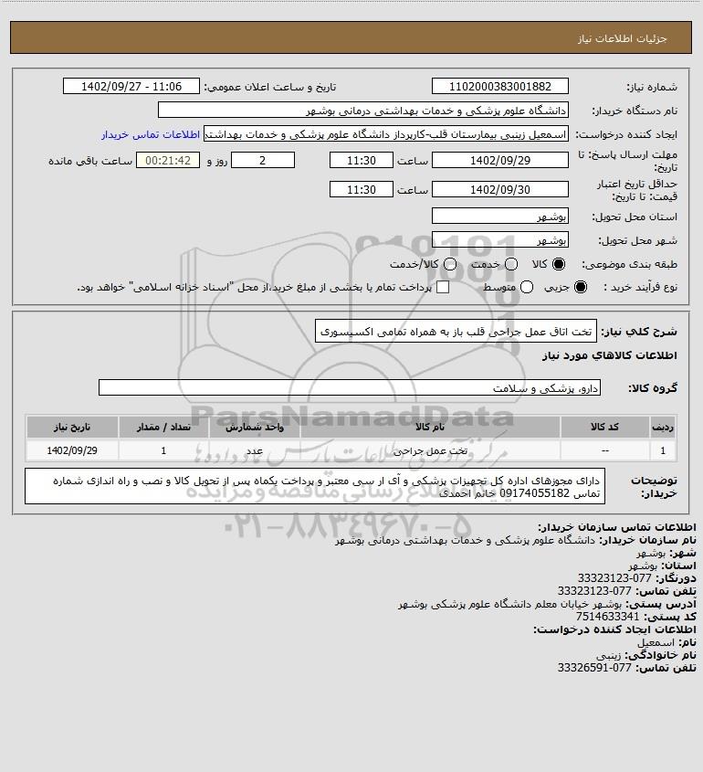نام دستگاه خریدار:دانشگاه علوم پزشکی و خدمات بهداشتی درمانی بوشهر