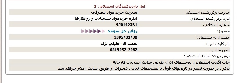 اداره برگزارکننده استعلام: اداره خرید مواد شیمیایی و روانكارها