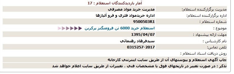 اداره برگزارکننده استعلام: اداره خریدمواد فلزی و فرو آلیاژها