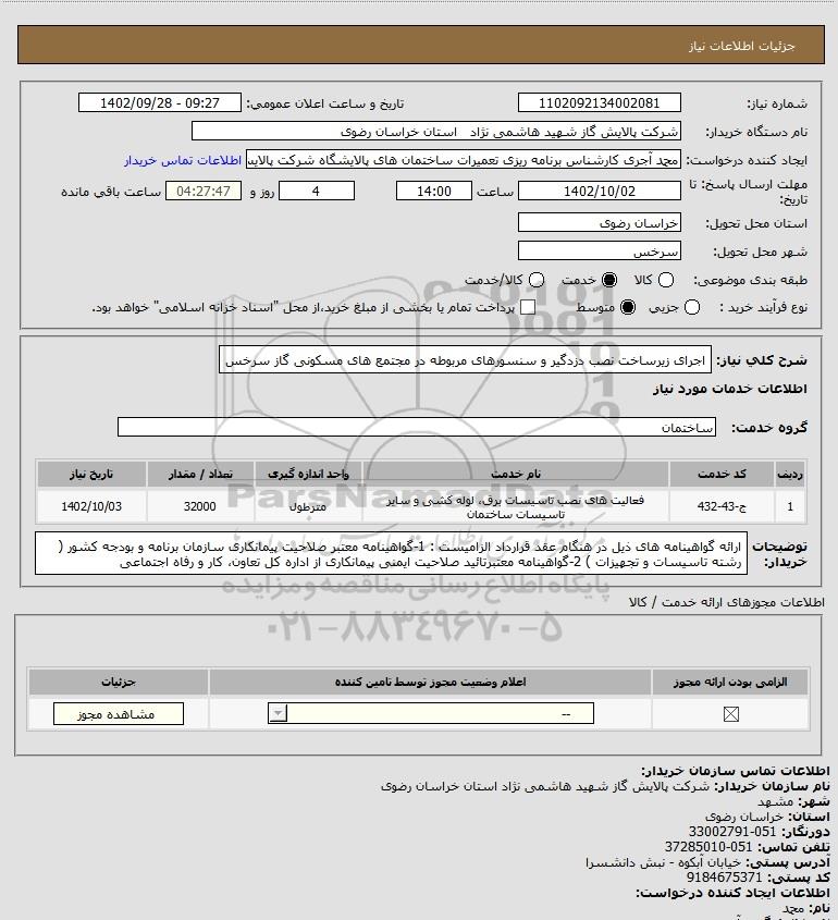 استعلام اجرای زیرساخت نصب دزدگیر و سنسورهای مربوطه در مجتمع های مسکونی گاز سرخس, استعلام اجرای زیرساخت نصب دزدگیر و سنسورهای مربوطه در مجتمع های مسکونی گاز سرخس