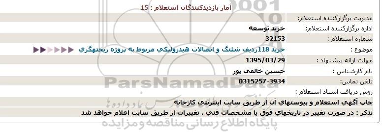 موضوع : خرید 118ردیف شلنگ و اتصالات هیدرولیکی مربوط به پروژه ریخته گری