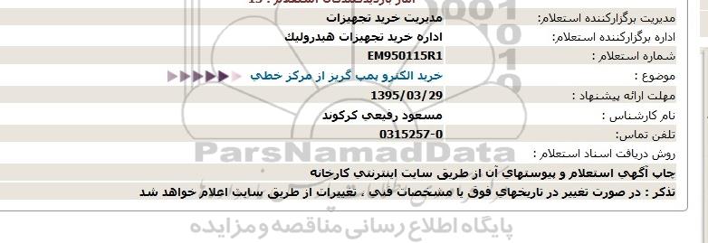 اداره برگزارکننده استعلام: اداره خرید تجهیزات هیدرولیک