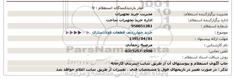 استعلام خرید چهار ردیف قطعات فولاسازی, استعلام , استعلام خرید چهار ردیف قطعات فولاسازی