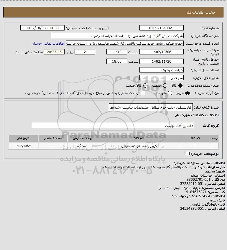 نام دستگاه خریدار:شرکت پالایش گاز شهید هاشمی نژاد استان خراسان رضوی