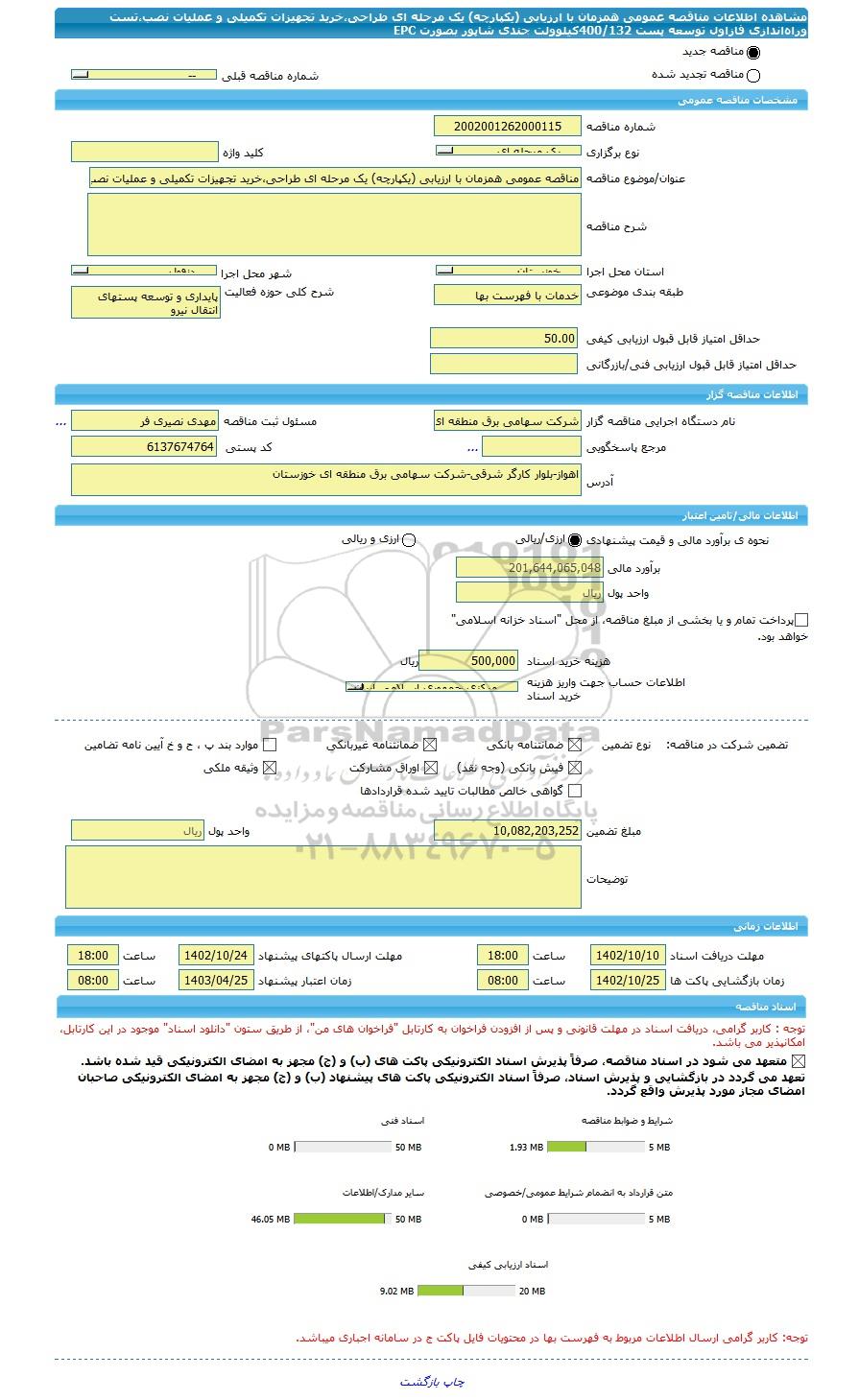 مبلغ تضمین10,082,203,252واحد پولریال