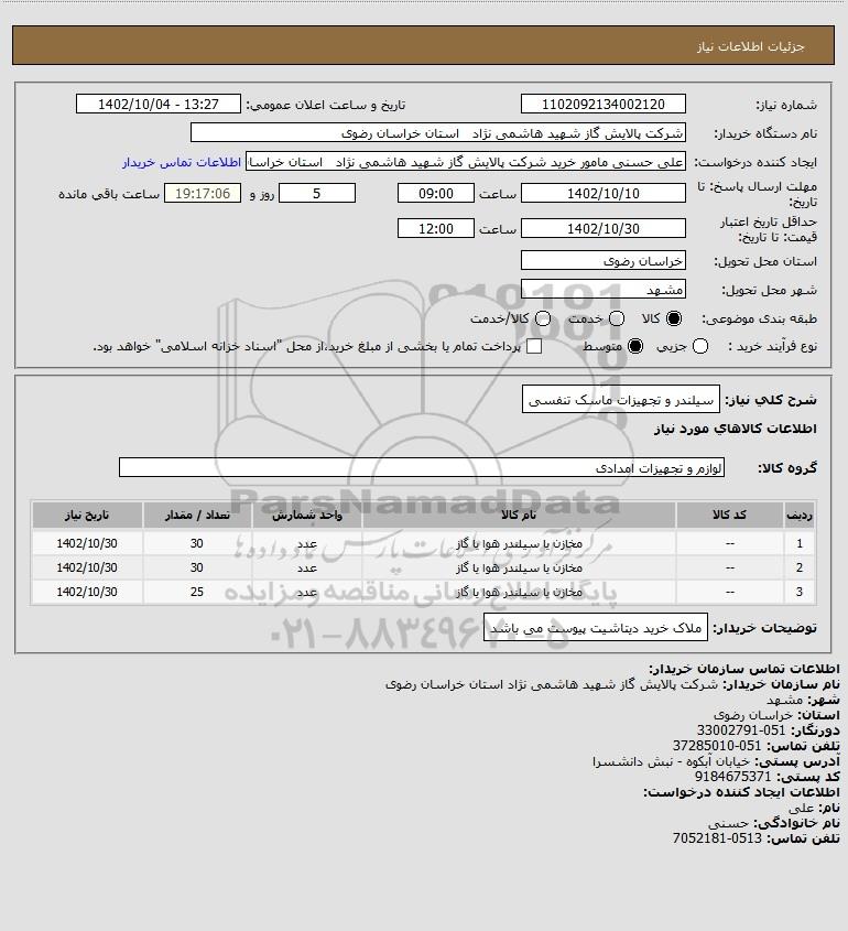 نام دستگاه خریدار:شرکت پالایش گاز شهید هاشمی نژاد استان خراسان رضوی