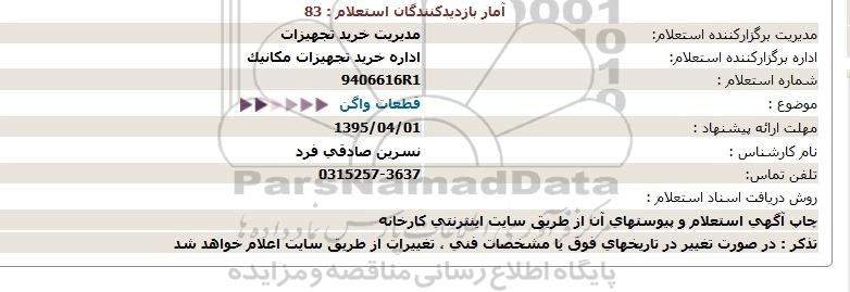 استعلام قطعات واگن, استعلام , استعلام قطعات واگن