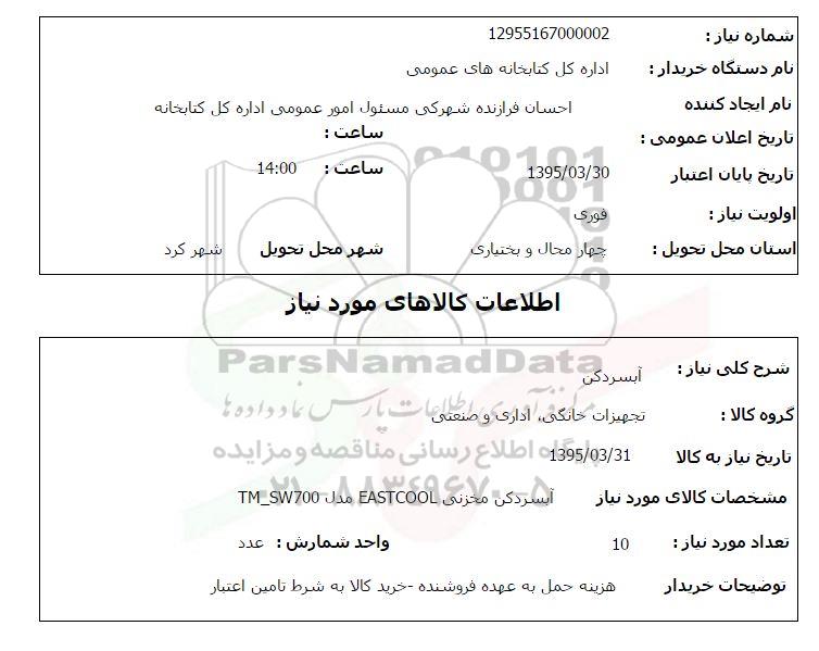 نام دستگاه خریدار : اداره کل کتابخانه های عمومی