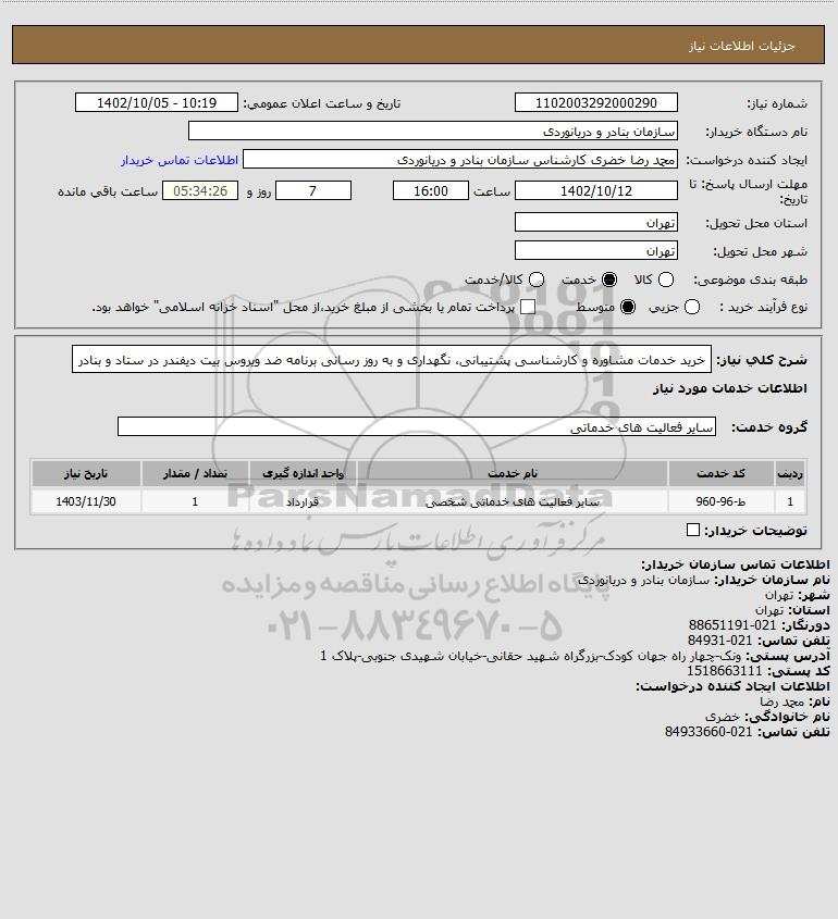 استعلام خرید خدمات مشاوره و کارشناسی پشتیبانی، نگهداری و به روز رسانی برنامه ضد ویروس بیت دیفندر در ستاد و بنادر, استعلام خرید خدمات مشاوره و کارشناسی پشتیبانی، نگهداری و به روز رسانی برنامه ضد ویروس بیت دیفندر در ستاد و بنادر