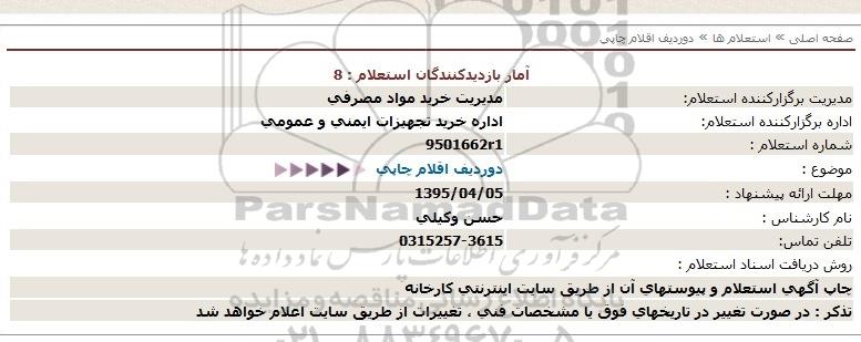 اداره برگزارکننده استعلام: اداره خرید تجهیزات ایمنی و عمومی