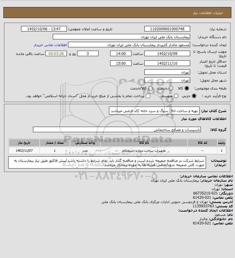 شرح کلی نیاز: تهیه و ساخت اتاق سوگ و سرد خانه /کد فرضی میباشد