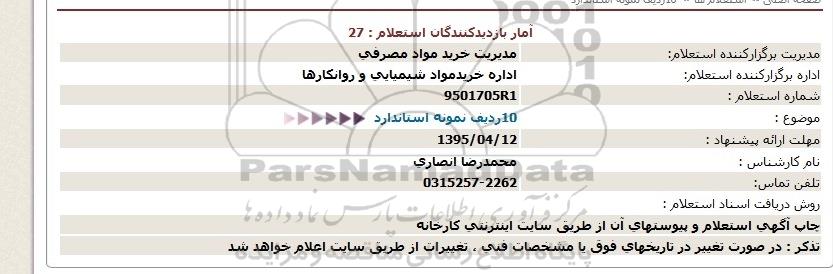 اداره برگزارکننده استعلام: اداره خریدمواد شیمیایی و روانكارها
