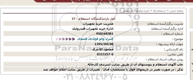 استعلام کنترل والو فولادی فلنچی, استعلام کنترل والو فولادی فلنچی