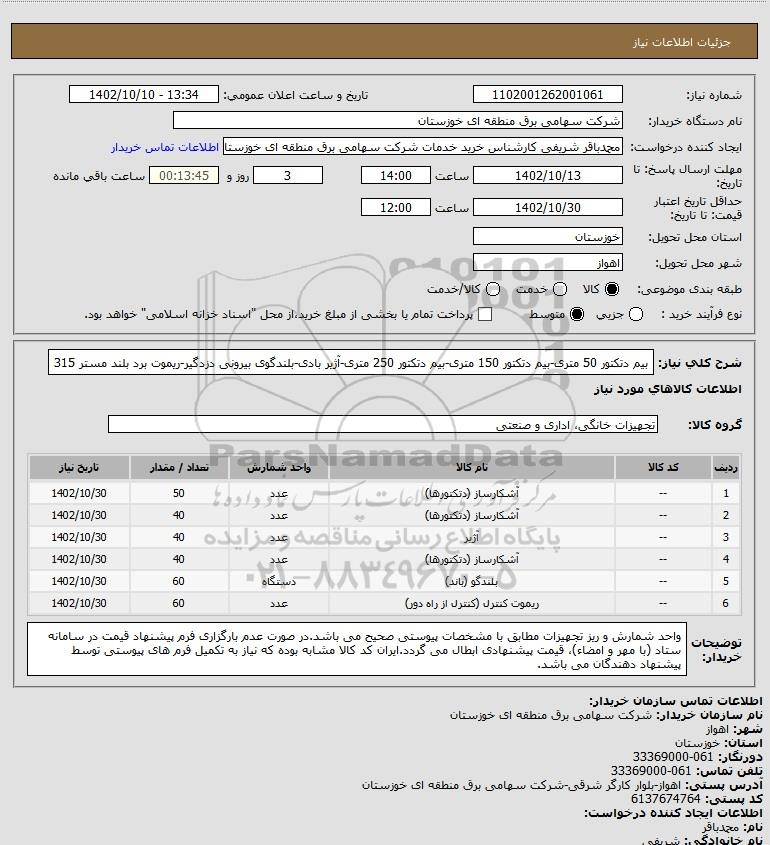 نام دستگاه خریدار:شرکت سهامی برق منطقه ای خوزستان