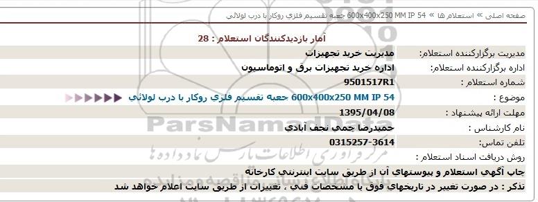 استعلام جعبه تقسیم فلزی روکار با درب لولائی, استعلام, استعلام جعبه تقسیم فلزی روکار با درب لولائی