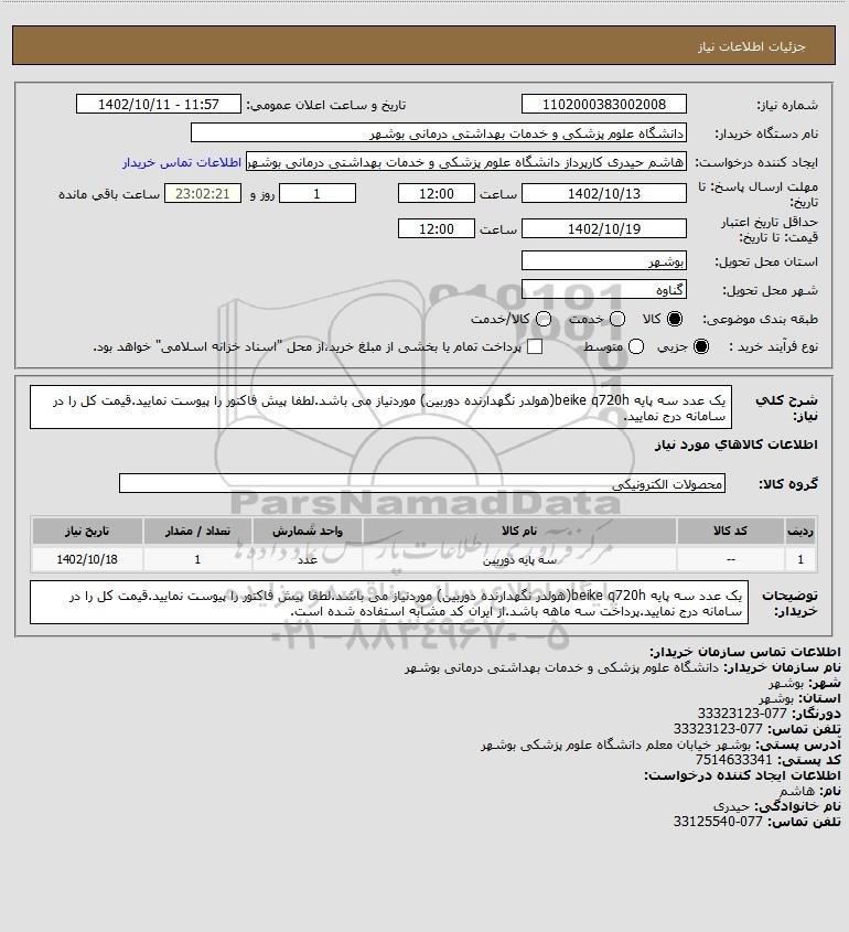 نام دستگاه خریدار:دانشگاه علوم پزشکی و خدمات بهداشتی درمانی بوشهر