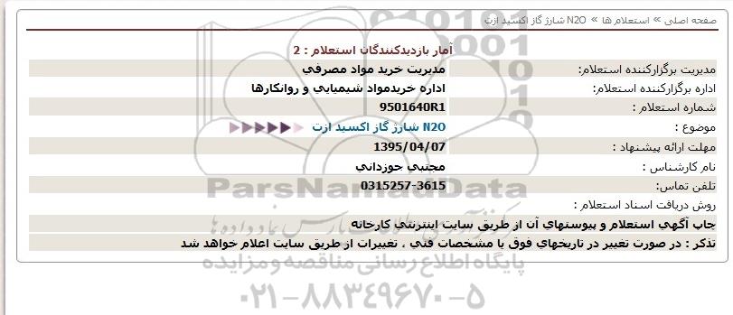 استعلامN2O شارژ گاز اکسید ازت , استعلام , استعلام N2O شارژ گاز اکسید ازت