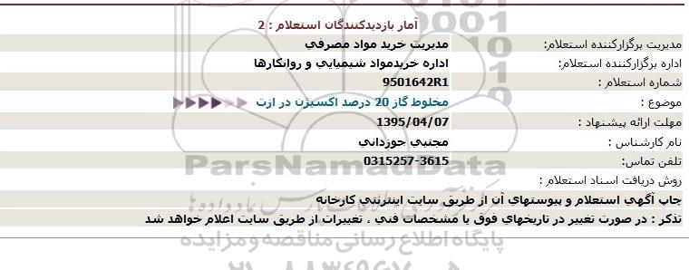 اداره برگزارکننده استعلام: اداره خریدمواد شیمیایی و روانکارها