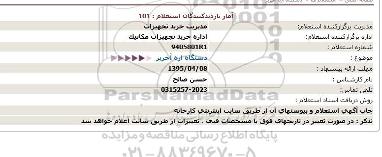 اداره برگزارکننده استعلام:  اداره خرید تجهیزات مکانیک