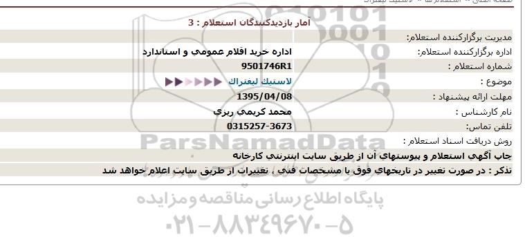 اداره برگزارکننده استعلام: اداره خرید اقلام عمومی و استاندارد