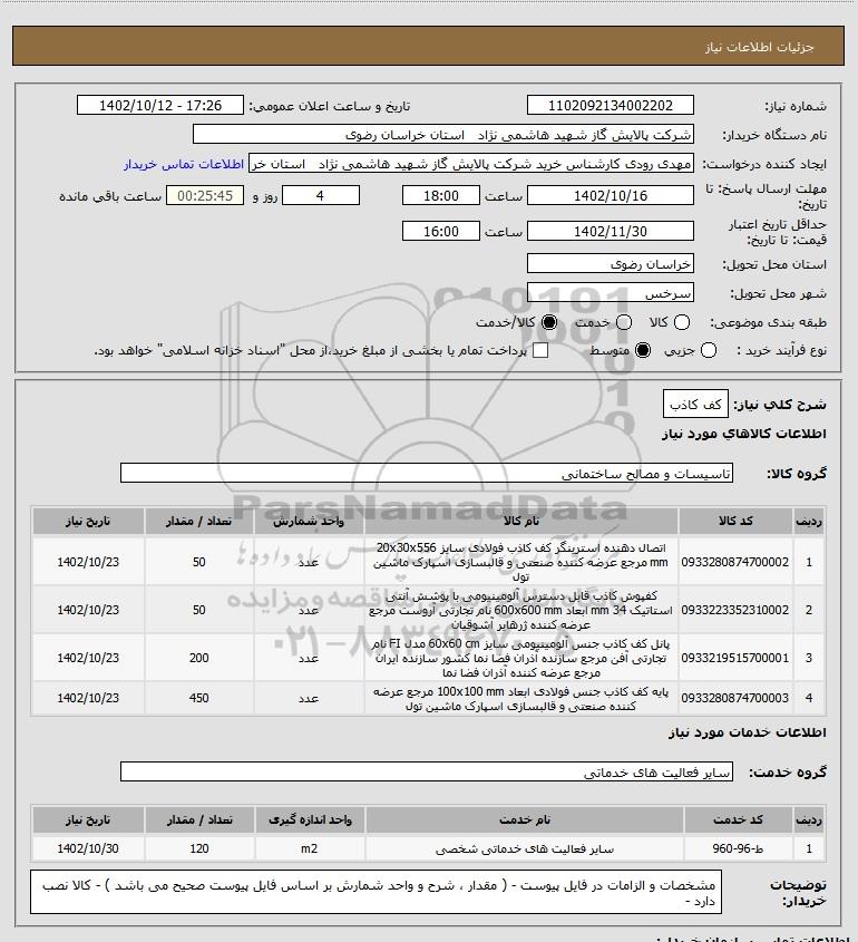 نام دستگاه خریدار:شرکت پالایش گاز شهید هاشمی نژاد استان خراسان رضوی