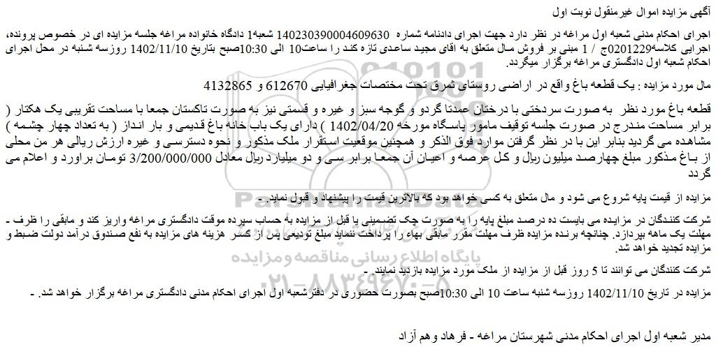 مزایده فروش یک قطعه باغ , مزایده فروش یک قطعه باغ