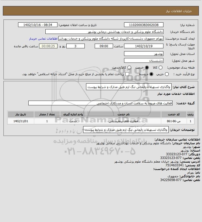 نام دستگاه خریدار:دانشگاه علوم پزشکی و خدمات بهداشتی درمانی بوشهر