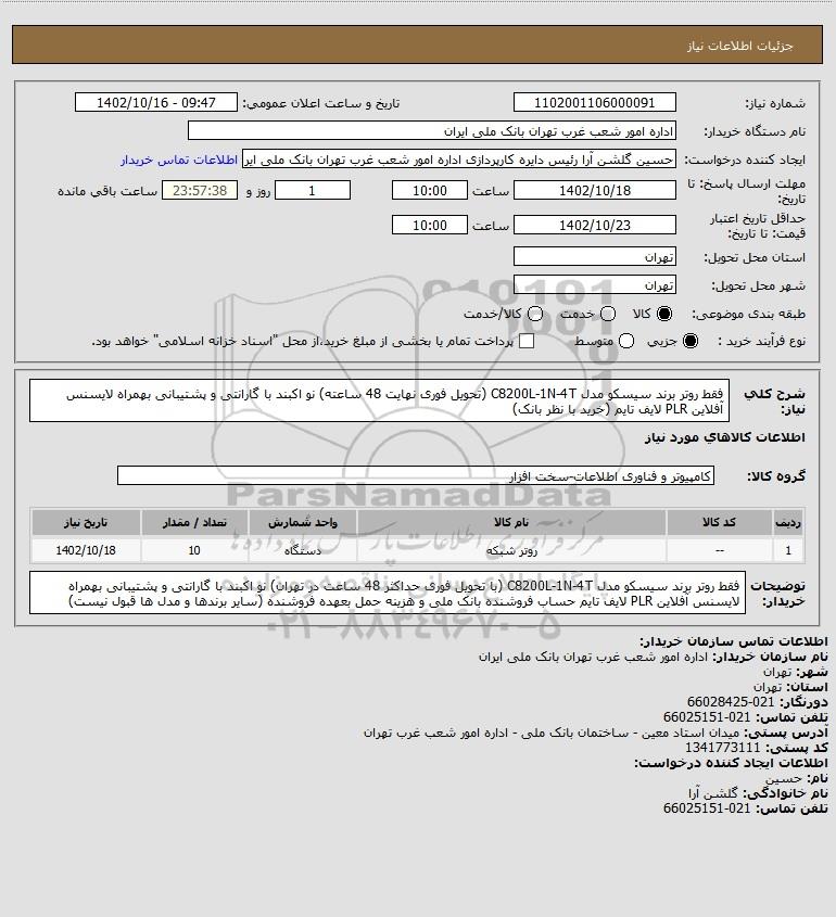 نام دستگاه خریدار:اداره امور شعب غرب تهران بانک ملی ایران