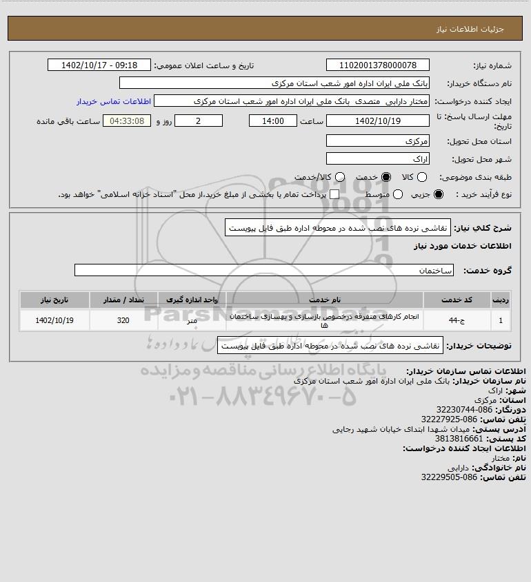 نام دستگاه خریدار:بانک ملی ایران اداره امور شعب استان مرکزی