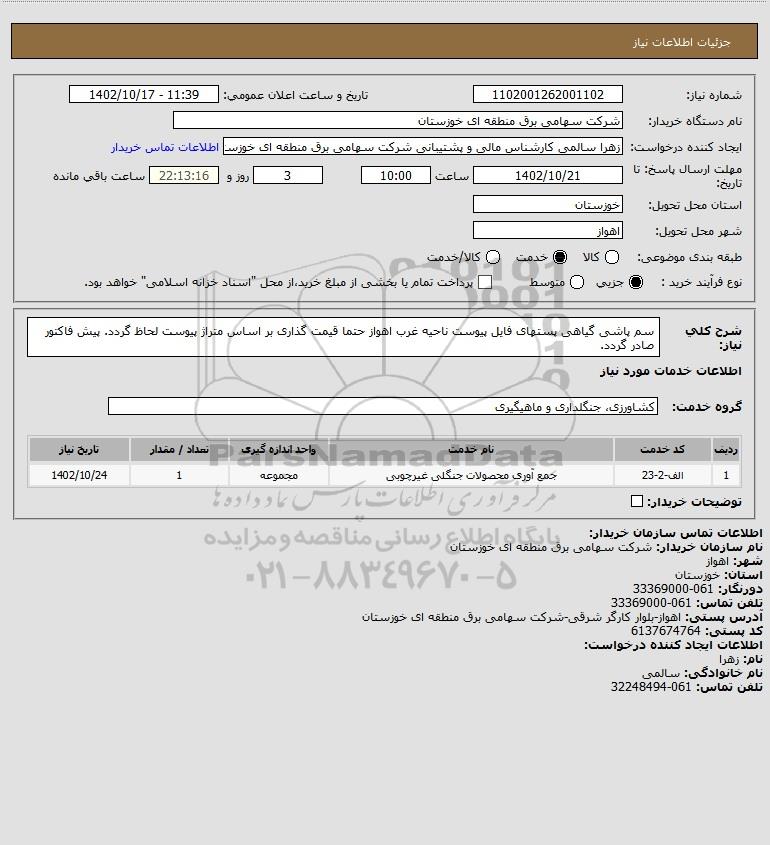شرح کلی نیاز: سم پاشی گیاهی پستهای فایل پیوست ناحیه غرب اهواز