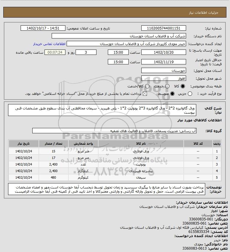 نام دستگاه خریدار:شرکت آب و فاضلاب استان خوزستان