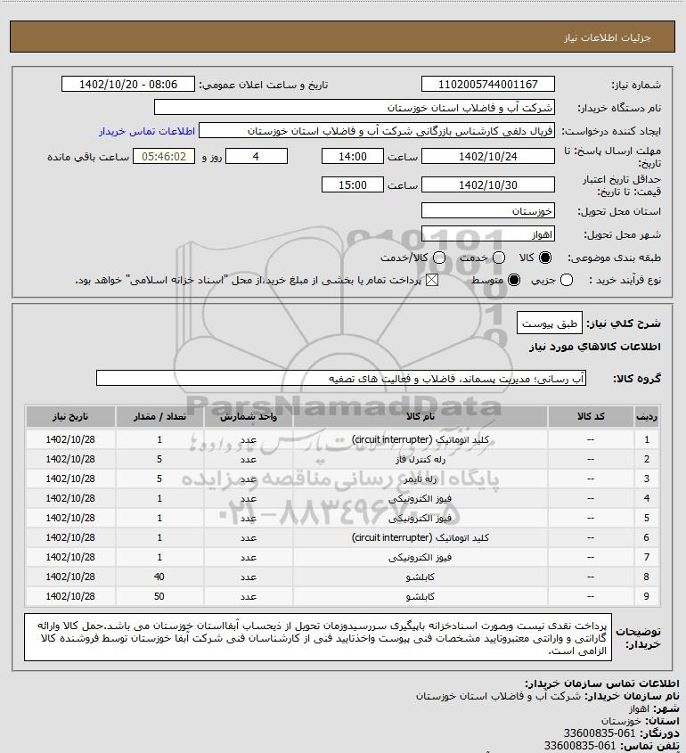 نام دستگاه خریدار:شرکت آب و فاضلاب استان خوزستان