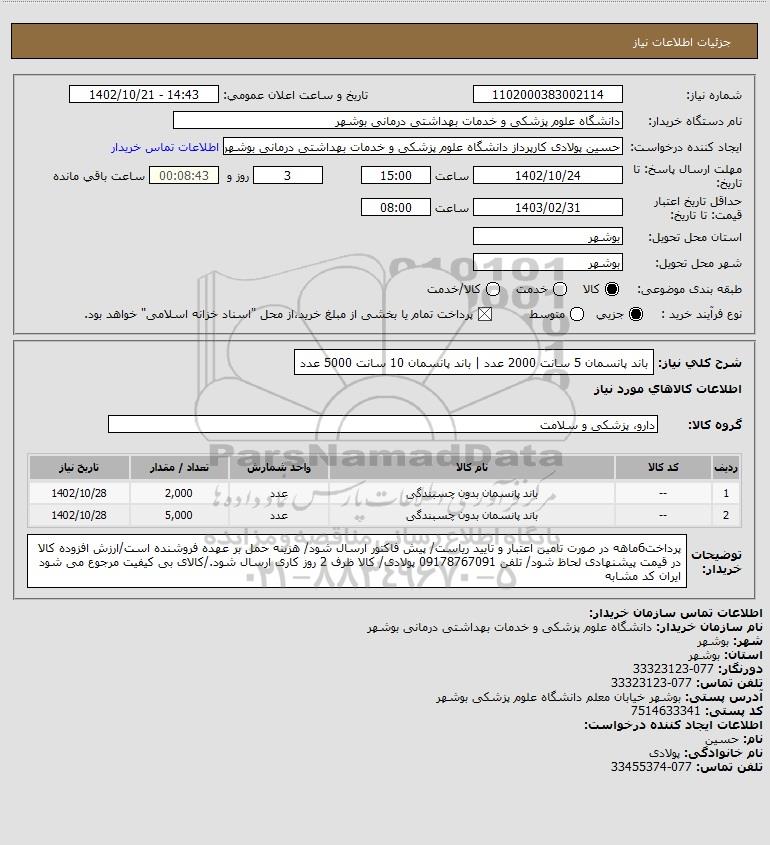 شرح کلی نیاز: باند پانسمان 5 سانت 2000 عدد | باند پانسمان 10 سانت 5000 عدد